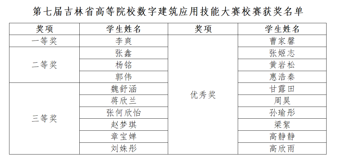 本次校赛是落实“产教融合、赛教一体”要求的重要实践,通过“以赛促学、以赛促教”双轮驱动,精准对接数字建筑行业人才需求。赛事构建“成果检验—能力诊断—经验积累”成长闭环,帮助学生查漏补缺,提升实践能力;同时,以赛事数据检验“理论+实操”培养成效,为后续课程体系优化提供参考。培训与校赛的开展,强化了学生对数字建筑技术的理解与应用,夯实了省赛备赛基础。