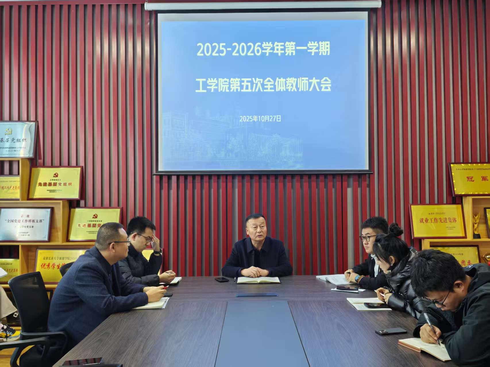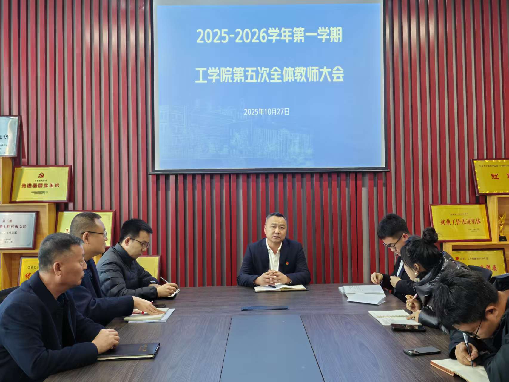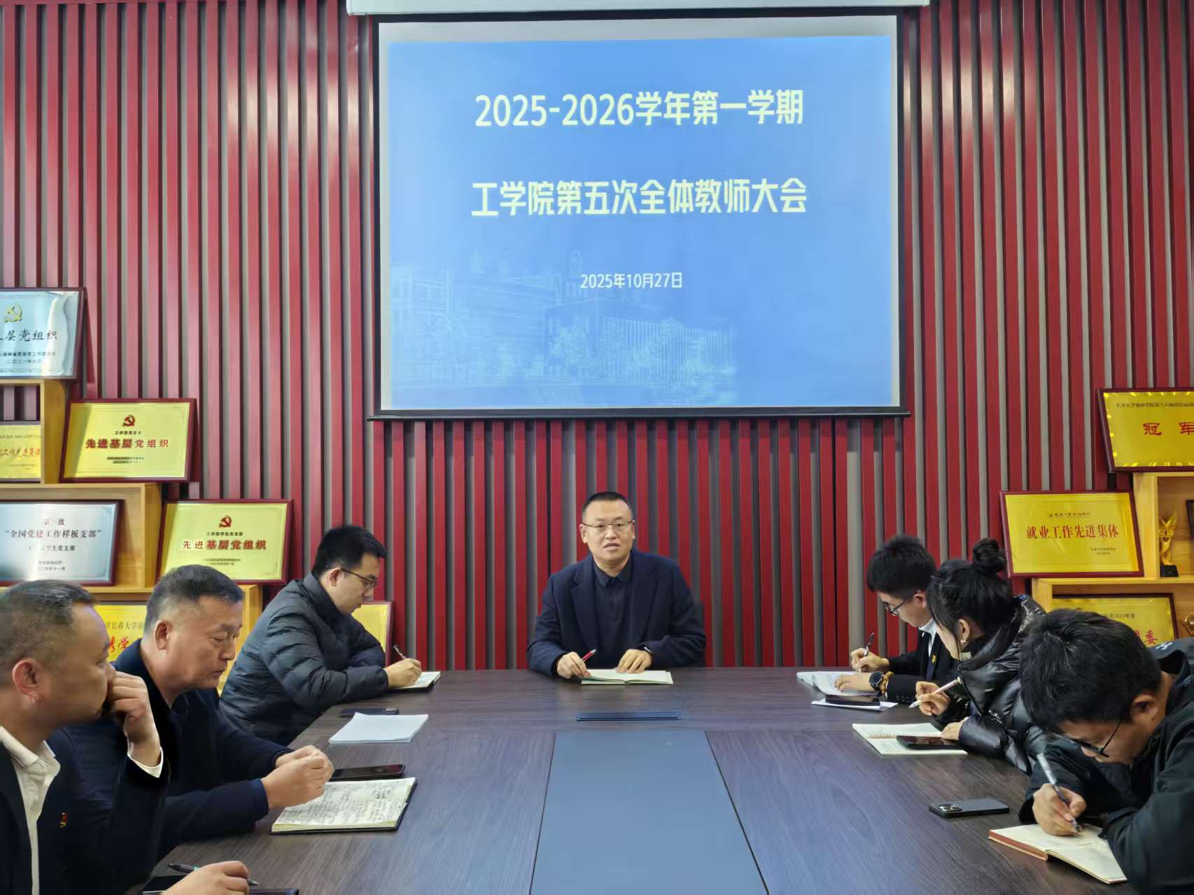 10月27日,工学院召开第五次全体教师大会,围绕教学管理、专业转型建设等重点工作进行安排部署,强调以规范教学秩序、深化专业转型为抓手,全面推进教育教学高质量发展。院长高峰、党总支书记仇岩、副院长董峻岩出席会议,各专业带头人及全体教师参会。