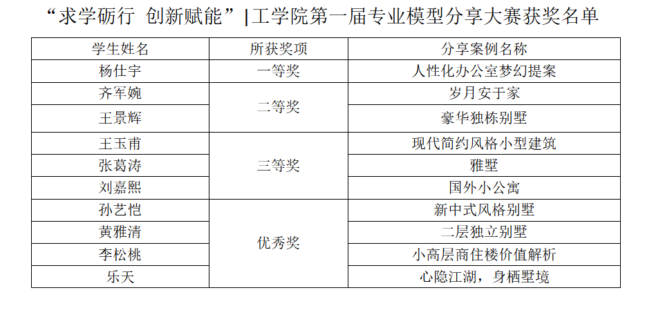 ▲工学院第一届专业模型分享大赛获奖名单