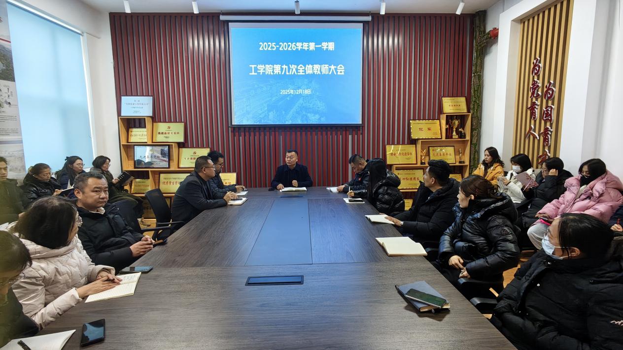 12月8日,工学院召开第九次全体教师大会,围绕学期末教学任务、专业转型升级、基础设施改造及“十五五”规划专项编制等重点工作进行了部署。院长高峰、党总支书记仇岩、副院长董峻岩、各专业带头人、教研室主任及学院全体教职工参加会议。会议由高峰主持。