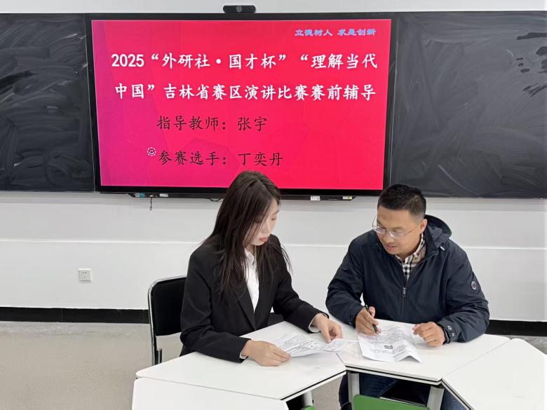 在指导过程中,张宇老师从赛事要求出发,为丁奕丹同学量身打造了全方位的培训计划。张宇老师注重将思政教育与专业能力培养相融合,使选手在提升外语水平的同时,加深对当代中国发展道路的理解与认同。