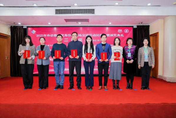 近日,由高等教育出版社主办,西安交通大学承办的“2025年外语微课优秀作品现场交流活动”在陕西西安圆满落幕。我校基础部教师张宇、杨威、谷文月团队凭借出色的微课作品与现场表现,荣获本科组全国优秀作品二等奖,学校荣获“优秀组织奖”,全国仅有25所院校获此殊荣,在闭幕式上作为获奖院校代表上台领奖,充分展现了我校在外语教学改革与教师发展方面的卓越成效。