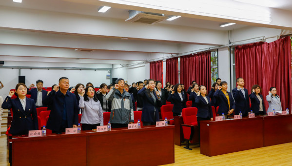 最后,由程越带领全体教师进行“人民教师誓词”宣誓。