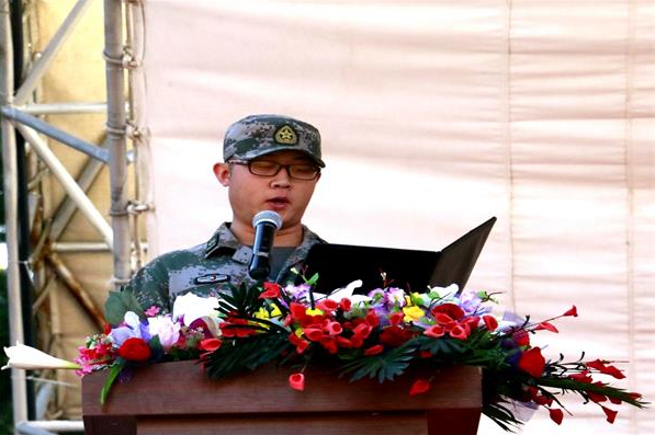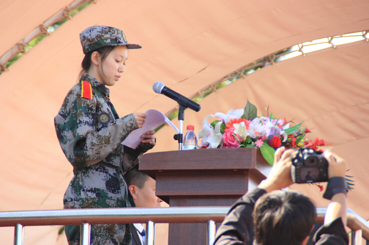蔡翔亦团长代表全体军训教官发言 蔡翔亦团长代表全体军训教官发言,“全体教官们会时刻保持良好的军人姿态,将严格要求自己与耐心指导相结合,做到科学军训,精心组织,认真完成此次军训任务。”