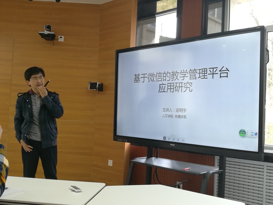 设计及美化技巧》和《基于微信的教学管理平台应用研究》的培训。培训中主讲教师禄明宇讲解了