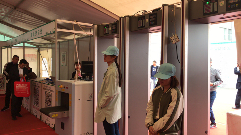 学生们粘贴楣板标志 展会期间,志愿者们负责门禁工作;协助保安将参展商与观众进行划分,核对展商证件;引导观众扫码登记有序进入会场;并对观众和参展商的问题给予耐心的解答和帮助。展会临近尾声,志愿者们协助工作人员将展板撤迁,将设备归还原处,并进行安全检查。