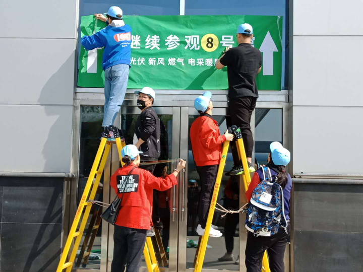 此次展会分为“东北亚清洁能源”、“国际包装印刷”及“车展”三个部分,共占用长春国际会展中心4个场馆。前期筹备工作于5月2日展开,志愿者在对4个展馆的规模以及各展位的布局了解之后,根据现场展位图粘贴各个参展商的楣板标志,并将各种设备安放到位。
