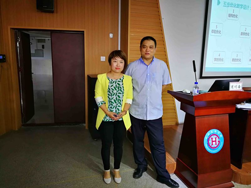 图为蔡维英老师和周付安老师合影周付安老师用了一天的时间就五步优化教学设计的内容做了详细的讲解,五步优化教学设计包括结构优化、目标优化、教的优化、学的优化和体验优化五个方面。 周老师在讲解教学设计的过程中语言风趣幽默,列举了大量的教学设计的实例,特别是在如何调动学生们的积极性和如何有效的教学方面做了大量的详细讲解。同时在讲解的过程中不断的让参加培训教师参与其中,充分的展示了五步优化教学设计在课堂上应用。本次培训,使我校教师受益匪浅,充分的认识到教学优化设计和提高学生们的积极性及有效教学的重要性,对以后的教学设计和课堂教学起到良好的指导作用。 |
