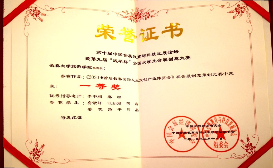 经过几个月的参赛筹备与策划,加上比赛现场演示与答辩环节,我校会展经济与管理专业学生代表队在策划组的比赛中展演的“2020首届长春国际人生文创产业博览会”获得一等奖。我校同时荣获“中国会展信息化教育优秀院校奖”;李中闯、麻松两位老师荣获“中国会展教育名师奖”。