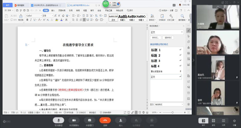 会议第六项,旅游管理学院办公室负责多媒体设备的公淇老师对线上网络应急处理办法进行详细说明,同时表示在电子教材、在线教学培训等方面全力做好辅助工作。