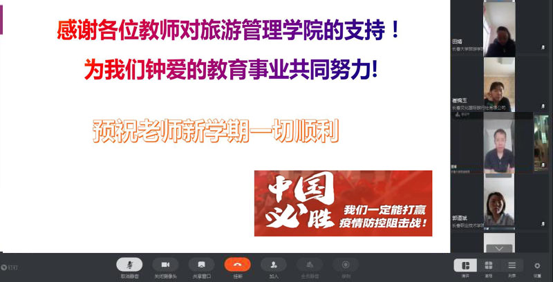首先,院长对大家在疫情时期,仍然与我们旅游管理学院相守,不离不弃,克服重重困难支持在线教学的全体教师表示最衷心的感谢!并向在假期期间认真准备在线教学的全体教师表示最崇高的敬意!同时对假期在线教学工作进展情况进行全面总结。