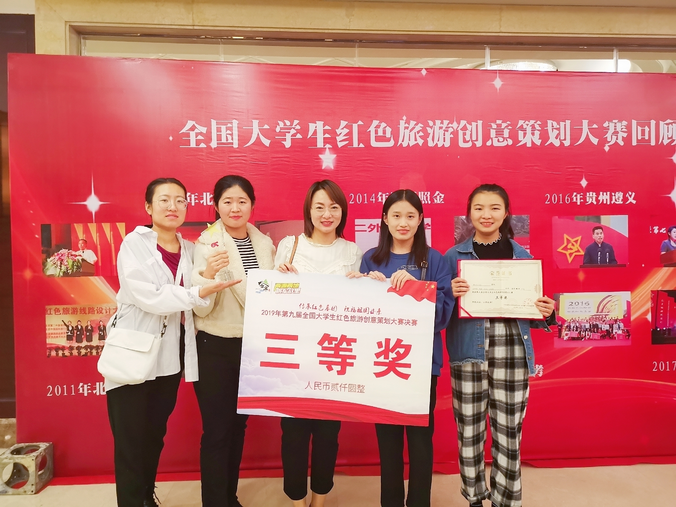 我校田婧老师指导的映山红小分队在初赛中获得东北赛区一等奖,带表整个东北赛区参加总决赛。在总决赛中通过情景剧、合唱及诗歌朗等多种形式对红色旅游创意产品进行展示,受到评委组的好评。最后荣获国家三等奖。
