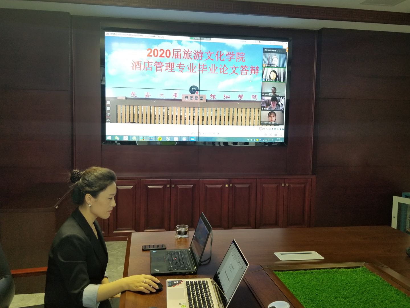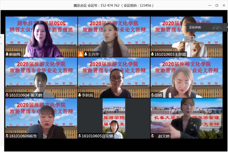 “云答辩”作为一种新答辩的形式,如何确保过程和效果有序有效?为此,旅游文化学院根据长春大学旅游学院《2020届本科毕业论文答辩及相关工作排》等文件的要求,结合学院实际情况,旅游文化学院提前制定了《旅游文化学院2020 届本科毕业论文答辩总体工作方案》和《旅游文化学院2020届毕业生网上答辩流程》对在线答辩人员构成、答辩流程、工作要求等作了详细介绍和安排;为在线学位论文答辩提供操作规范流程;成立技术支持工作组,经过前期多次测试保障在线答辩工作顺利有序进行。