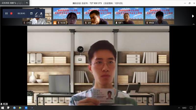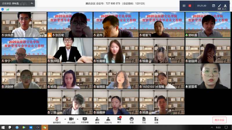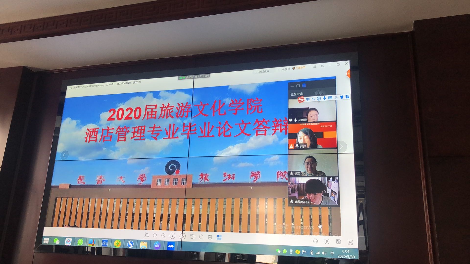 2020年5月30日旅游文化学院为了应对新冠肺炎疫情,于腾讯会议进行首场毕业论文答辩。参加本次答辩的有答辩委员会组长:孙国霞,副组长:周丽君,成员:杨絮飞、杨春梅、李中闯、王兴华、蔡维英、麻松和各专业答辩委员,教务处科长王丹全程线上观摩指导。通过“云答辩”旅游文化学院2020 届本科毕业论文答辩安排如期进行。