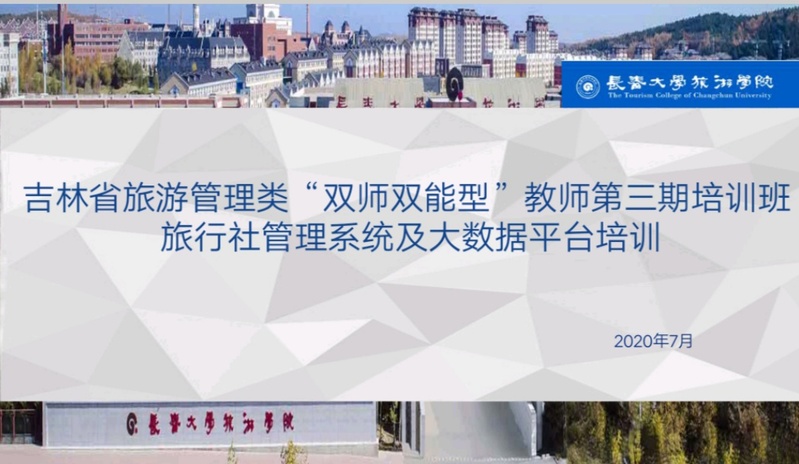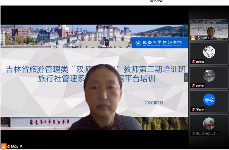 为深入贯彻党的十九大和十九届四中全会精神,落实全国、全省教育大会部署要求,加快推进高等教育现代化建设,增强高等学校服务经济社会发展能力,适应旅游产业转型升级及疫情下复工复产要求,响应国家和吉林省一流专业建设,强化旅游管理专业教师实践教学技能,我校的“吉林省旅游管理类‘双师双能型’教师培养培训基地”于7月16-20日于腾讯会议线上举办第三期培训班。