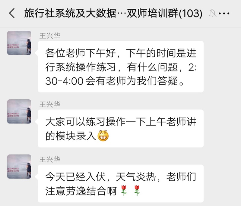 旅行社管理教研室主任王兴华老师组织微信群答疑