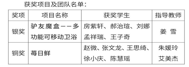 2020年9月5日,由吉林省教育厅举办的“建行杯”第六届吉林省互联网+大学生创新创业大赛进行了决赛。我学院会展经济与管理专业《驴友魔盒——多功能可移动卫浴》项目在本届大赛中克服了前期新冠疫情带来的种种困难,经过激烈角逐,斩获银奖,该奖项为我院在此赛事历年中最高奖项。