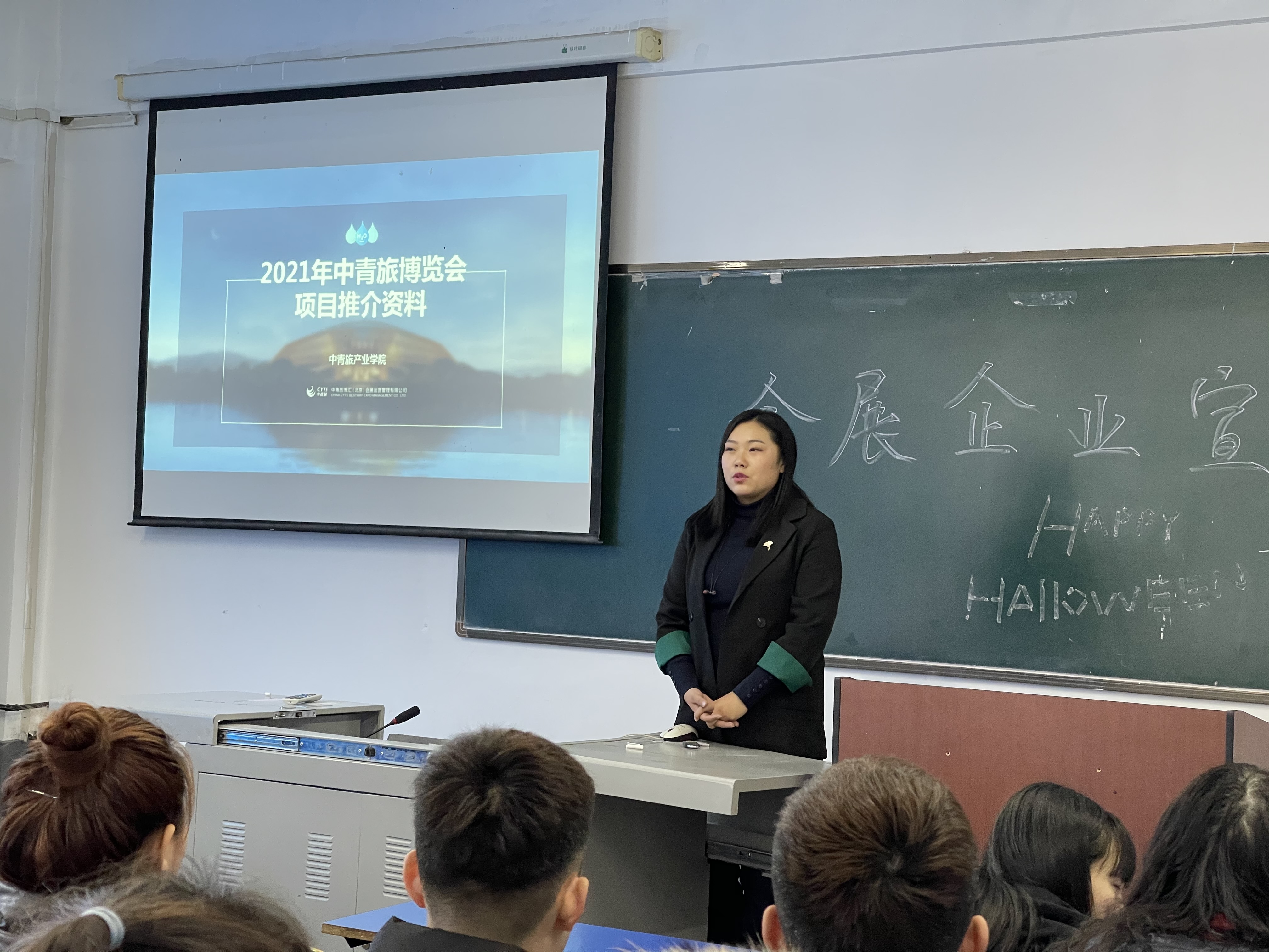 屈经理从中青旅集团的发展历程,历年来中青旅博汇所组织开展的博览会工作,以及2021年集团将要承办的项目等几方面展开。屈经理代表中青旅博汇团队强调了公司的管理优势,从安全管理 、教学管理 、培训管理和就业管理不同的层面来为同学们讲解了中青旅博汇团队的优势,会以集团丰富的管理经验带领同学们在2021年不同的项目中在各自不同的工作岗位上模拟、上岗、总结及综合能力的培养。