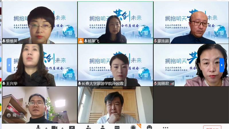 2021年1月13日,长春大学旅游学院和中国职工国际旅行社总社校企携手举办校企合作座谈会。中国职工国际旅行社总社健康与发展部张连红部长、李叶飞副部长、部长助理马海涛、中工学院执行院长刘学雷、副院长杨树山、项目部主任孙放、合作发展部主任刘增文、全国职工健康促进工程宣传教育部主任陈秀春,旅游文化学院院长孙国霞,副院长、旅游管理专业(景区规划与管理方向)带头人周丽君,副院长、旅游管理专业(旅行社方向)教研室主任王兴华、旅游管理专业(旅行社管理方向)带头人杨絮飞、旅游管理专业(景区规划与管理方向)教研室主任蔡维英、旅游管理专业教师蒙连超参加了座谈会,座谈会由杨絮飞主持。