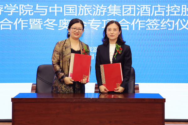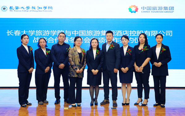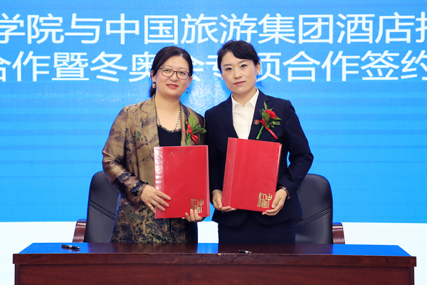 赵莹与张宇共同签订了《长春大学旅游学院与中国旅游集团酒店控股有限公司战略合作框架协议》。
