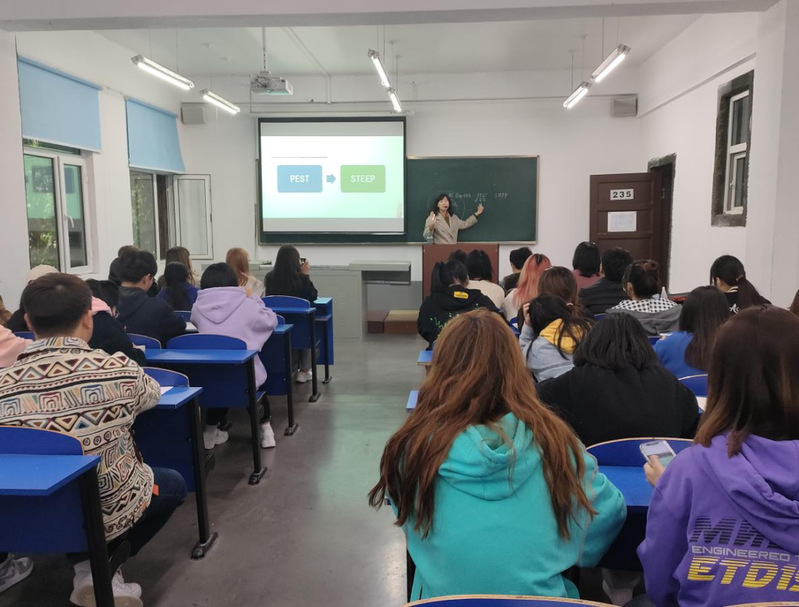 李桃老师为学生们详细地介绍了电子商务案例分析中常用的分析工具,并指导说明电子商务案例可分析的角度,提示学生们针对不同的分析角度选择不同的分析工具,帮助学生们明确了电子商务案例分析的思路,有针对性地培养学生创意思维、市场营销分析、营销策划、组织管理等能力,赢得了学生们的阵阵掌声。