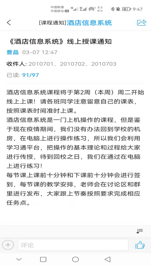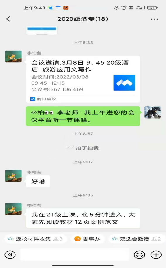 3月8日,学院共有17位教师线上授课,由于学院提前谋划统筹安排,全体教师“声情并茂,身临其境”在线与学生互动,二级督导深入网络课堂听课,并积极总结和反馈线上教学效果,使得首日学院的教学运行顺畅有序。