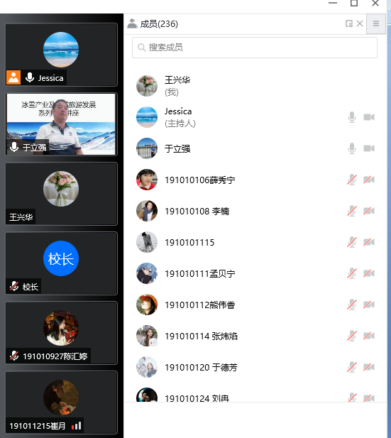 于教授与同学们就如何在后冬奥时期传承和发扬中国冰雪文化、如何更好地开展校园冰雪文化、如何加快我国冰雪产业的建设和发展等课题进行了积极互动,氛围良好,鉴于线上交流时间的问题,于教授将其个人微信和联系方式给了同学们,希望后续与同学们做进一步的交流。