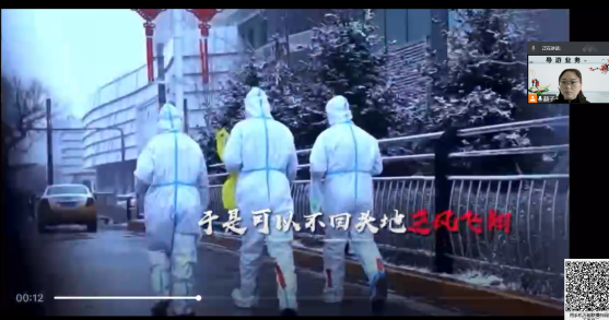 上课前以《温暖的大白》为主题进行了暖心活动。在三分钟的时间里,以视频的形式展示了抗疫志愿者的辛苦付出,并和大家分享了身边的暖心故事。我们的安全是要无数的志愿者和医护人员辛苦的付出所换来的,同学们要感恩他们的付出,并倍加珍惜我们的学习机会,我们共同努力,“冬已尽•盼花开•长旅见!”
