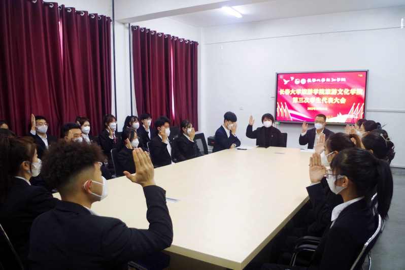 会议最后,进行长春大学旅游学院第三次学生代表大会学生代表选举。按照相关要求,经学生所在团支部推荐,旅游文化学院第三次学代会筹备委员会审核,共有18位提名学生入选第三届学生代表大会学生代表。