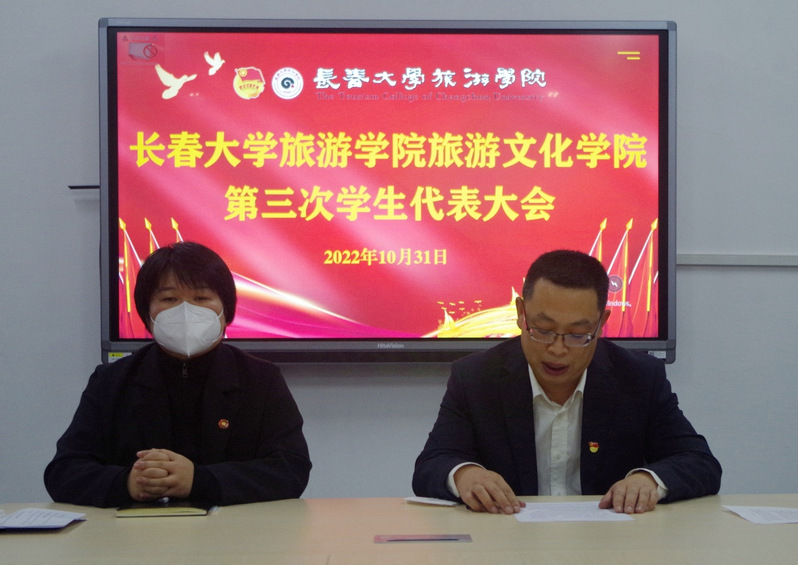 乘新时代东风,放飞青春梦想。为响应党的二十大,不断深化我院学生会改革。10月31日中午12时,旅游文化学院于综合楼211召开第三次学生代表大会,党总支书记姜欣、团委书记张锦华两位领导莅临指导,共有三十位学生代表出席本次会议。