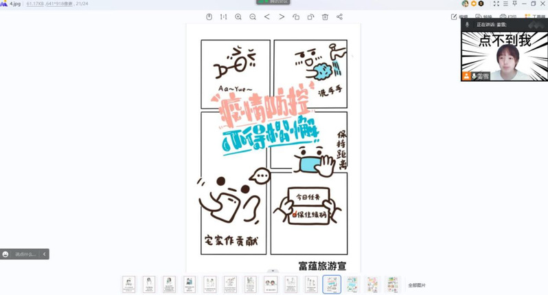 战疫,人人有责!作为新时代的大学生,同学们应该明白自己肩上的重担和责任。姜雪老师带领同学们观看了疫情抗战小动画及宣传图片。视频用第一人称的视角,讲述了抗疫工作人员不畏困难、无惧疫情、坚守岗位的故事。看完视频后,老师带领同学们思考这样的话题:在疫情期间,应该承担怎样的责任?如果你是视频里的工作人员,你能做到她这样吗?同学们纷纷提出自己的观点和看法,都认同在无论身在何处,都应该尽职尽责。如今同学们在学校上网课、老师在家里讲网课,这都是我们各自的坚持与守候。如果不能冲在抗疫第一线,那么顺应着静态管理的趋势,慢下来、静下来、稳下来,也是我们的尽责。