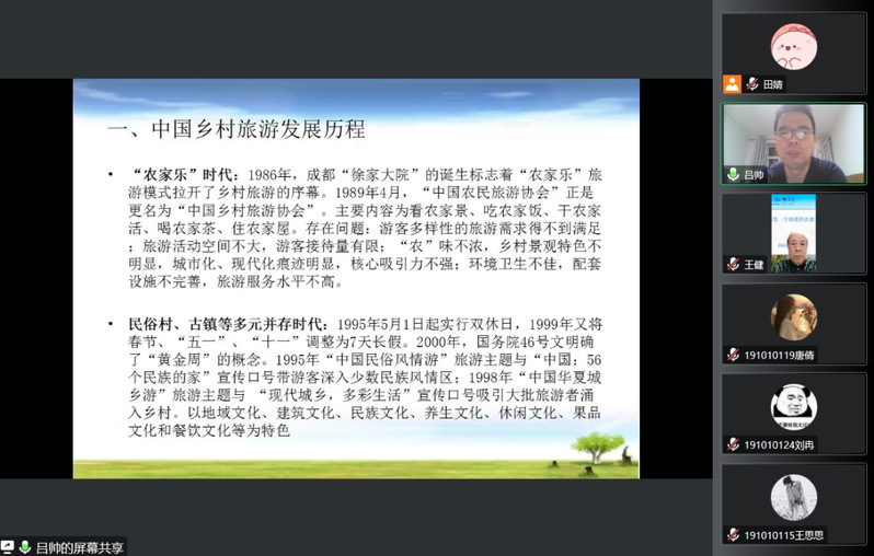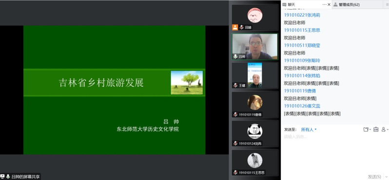 吕老师介绍完后,围绕吉林省的乡村旅游发展,同学们在线上与吕老师展开了热烈的师生互动,提出了一些问题。针对这些问题,吕老师一一做了精彩的解答,澄清了同学心中的困惑。