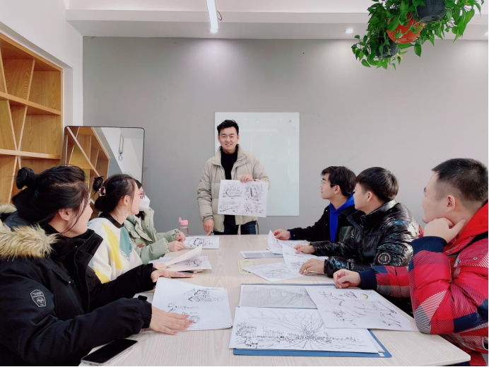 为做好疫情防控,本次活动分小组一对多讲授方式进行,由教研室主任姜雪主持,孙佩泽为主讲人,针对文化产业管理专业学生三维绘图软件学习中存在的问题,围绕平面构成中的点线面、色彩风格应用、版式设计构思等主要内容进行讲解。孙老师重点强调了创作优秀文创作品需要结合地域文化进行文化创意,在满足产品功能性及艺术性的基础上深入挖掘其文化内涵,在设计中的视觉和功能融合等,对学生的习作进行具体指导,引起学生的学习兴趣。姜雪老师进行总结,让学生观察手绘图的构成及版式排布,对策划案中视觉图像设计制作进行详细指导,并交流了设计创意的经验。在作品讨论环节学生积极发言,各抒己见、气氛热烈。两位老师讲解循循善诱、指导详细具体,达到了启发学生创意思维和提高实践能力目的。