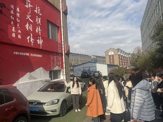 为纪念中国人民抗日战争暨世界反法西斯战争胜利80周年,引导新生感悟红色精神、厚植家国情怀,10月20日下午,文化产业管理专业2025级学生在姚宜廷老师的带领下前往“抗联精神 薪火相传”校园红色主题墙绘展区开展参观学习活动。本次活动由学生代表担任讲解员,带领新生重温抗联岁月,汲取精神力量。