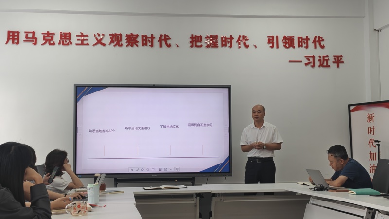 教师分享环节,李桂林老师结合暑期国外读博经历,介绍我校在职教师读博资助政策,鼓励青年教师提升学历、拓展视野;陈玮廷老师主动牺牲暑期休息时间,全身心投入第九、十期上合专项实训实验班指导工作,以高度责任感在繁重教学中锤炼能力、践行初心,用实际行动诠释“躬耕教坛、甘于奉献”的使命担当,为全院教师树立榜样。