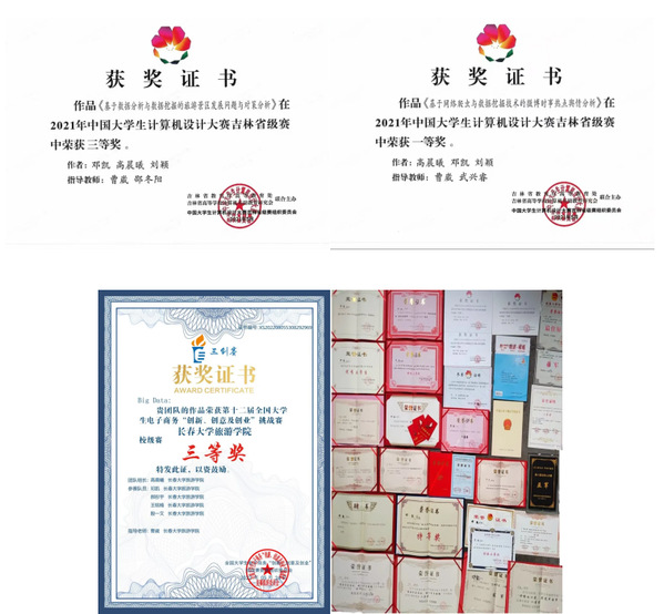 2019年,他初次挑战中国大学生计算机设计大赛,与团队反复调试程序、优化数据分析,最终斩获省级二等奖。此后,陆续在该赛事中获得省赛一等奖、三等奖各1项。在“挑战杯大学生创业计划竞赛”中,带领团队攻克技术难点,荣获省级三等奖2项。大三时,申报的大学生创新创业项目《基于云计算的可穿戴医疗设备》荣获国家级立项,相关研究成果发表于《科学与财富》杂志。基于数据挖掘技术构建的时事热点舆情分析系统,更在计算机设计大赛中入围国家级决赛。