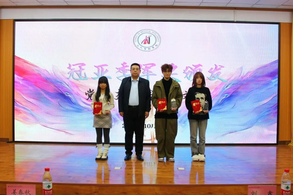 ▲刘鑫书记为冠、亚、季军选手颁奖