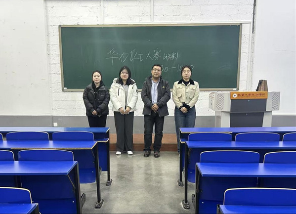 为确保赛事公平、专业、有序推进,本次校赛组建了由“校内教师 + 华为技术专家” 构成的联合监考团队。其中,4 名校内专业教师负责赛事流程把控与纪律监督,3 名华为技术人员则依托深厚的 ICT 技术积累,提供技术支持与专业指导,双重保障让赛事既符合高校人才培养导向,又紧贴行业技术标准,为参赛学生营造了严谨且贴合实际的竞技环境。