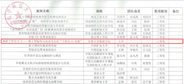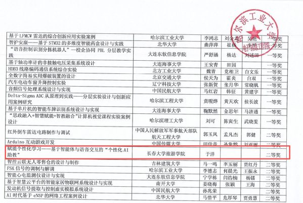 本届竞赛由教育部高等学校电子信息类专业教学指导委员会、国家级实验教学示范中心联席会电子学科组和中国电子教育学会等联合主办,分为北部、东部、西部、中南部四个赛区,全国超百所高校的612项案例报名初赛,235项案例入围总决赛。二位教师的案例,聚焦教育数字化转型需求,注重构建“问题导向-目标拆解-能力培养”的三阶教学模型,实现了“教-学-评”全流程智能化。于洋老师的案例在北部赛区(哈尔滨工业大学承办)中获北部赛区二等奖并晋级全国决赛,并最终在电子科技大学举行的全国总决赛中斩获三等奖。