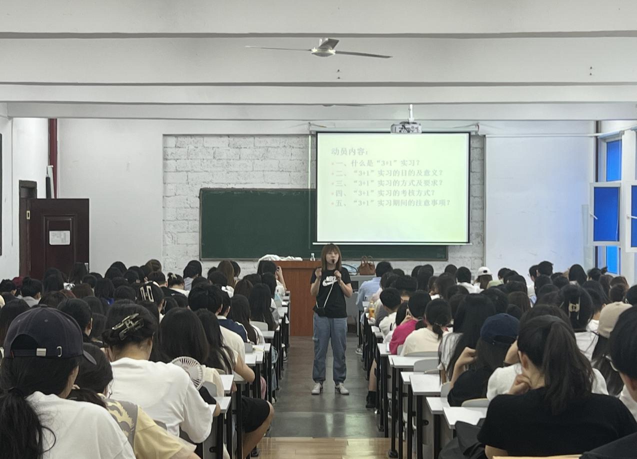 郑怡婷主任发表实习(就业)动员讲话。郑主任重点说明了“3+1”实习的目的及意义、实习方式及要求、实习考核方式、实习期间注意事项和就业择业方向等工作。