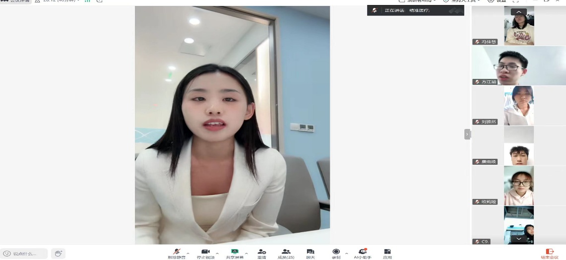 分享会伊始,任职于上海根本医疗总经理助理的刘雪松分享从求职到职场成长方面的经验。刘雪松建议学弟学妹们选择职业要坚持深耕和成长,避免因一时困难就轻易放弃,要投入时间和精力去理解和适应每一个行业。在工作时要树立强烈的目标感,利用个人的内在驱动力推动自己不断前进,同时要养成复盘的好习惯,将复盘作为成长基石催化个人成长。