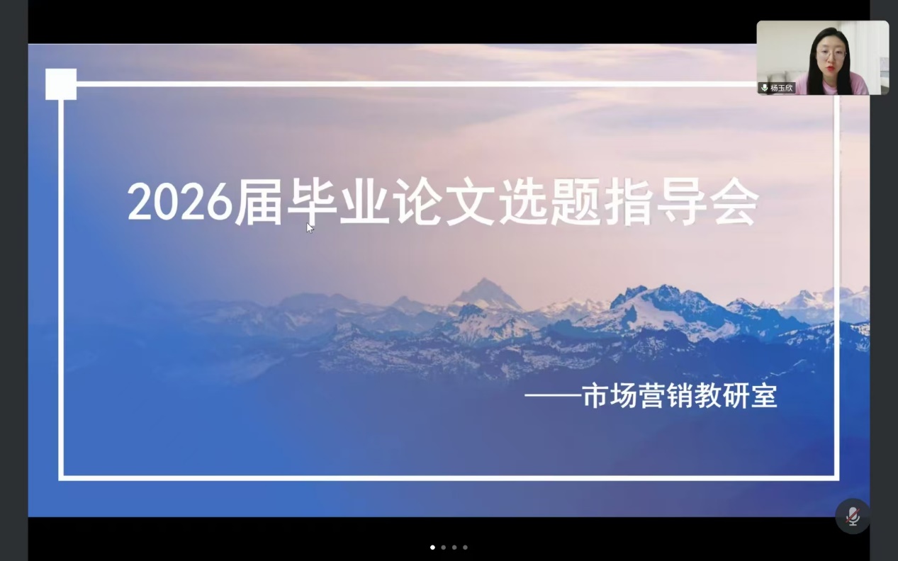 为指导市场营销专业毕业生高效启动并高质量完成毕业论文,市场营销专业于2025年11月14日成功举办了线上“2026届毕业论文选题指导会”。本次指导会旨在围绕毕业论文的重要性、选题方法以及资料查找途径等核心问题进行了深入的讲解。