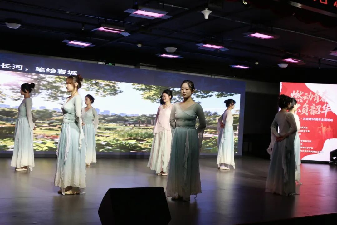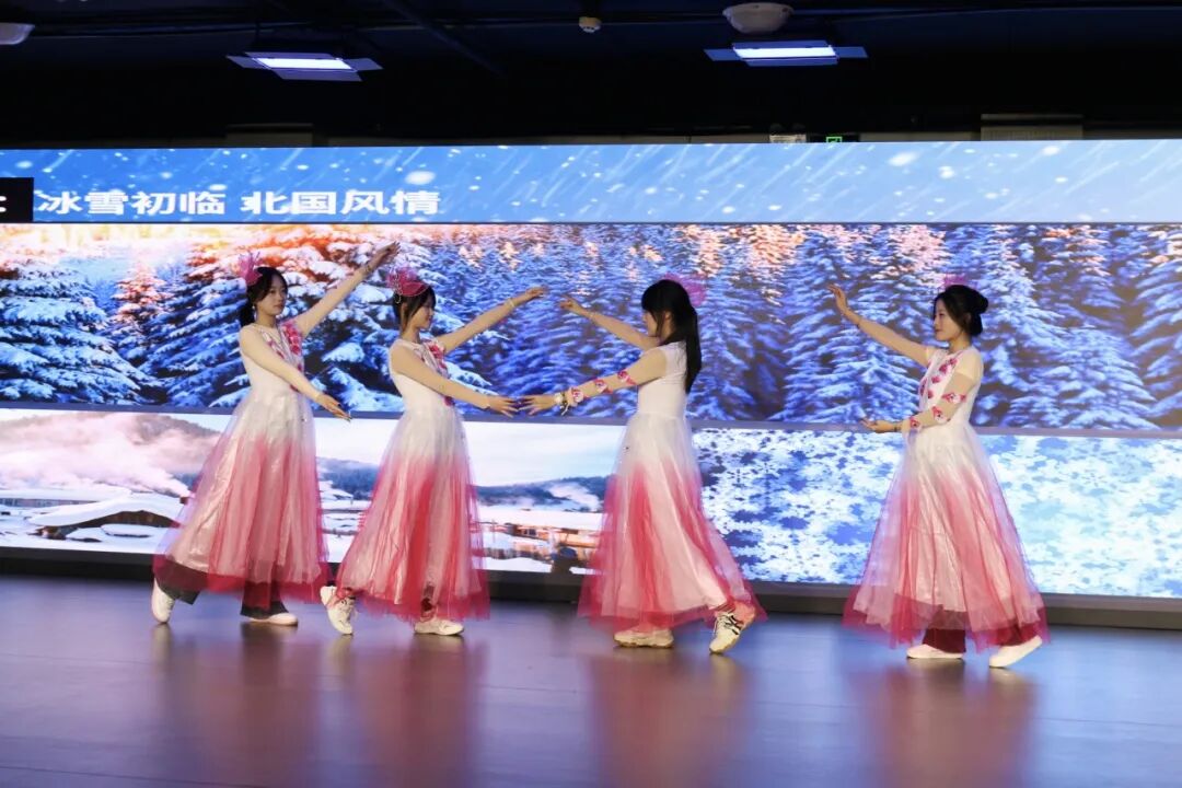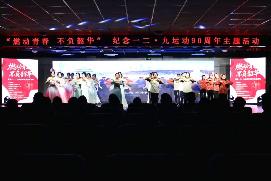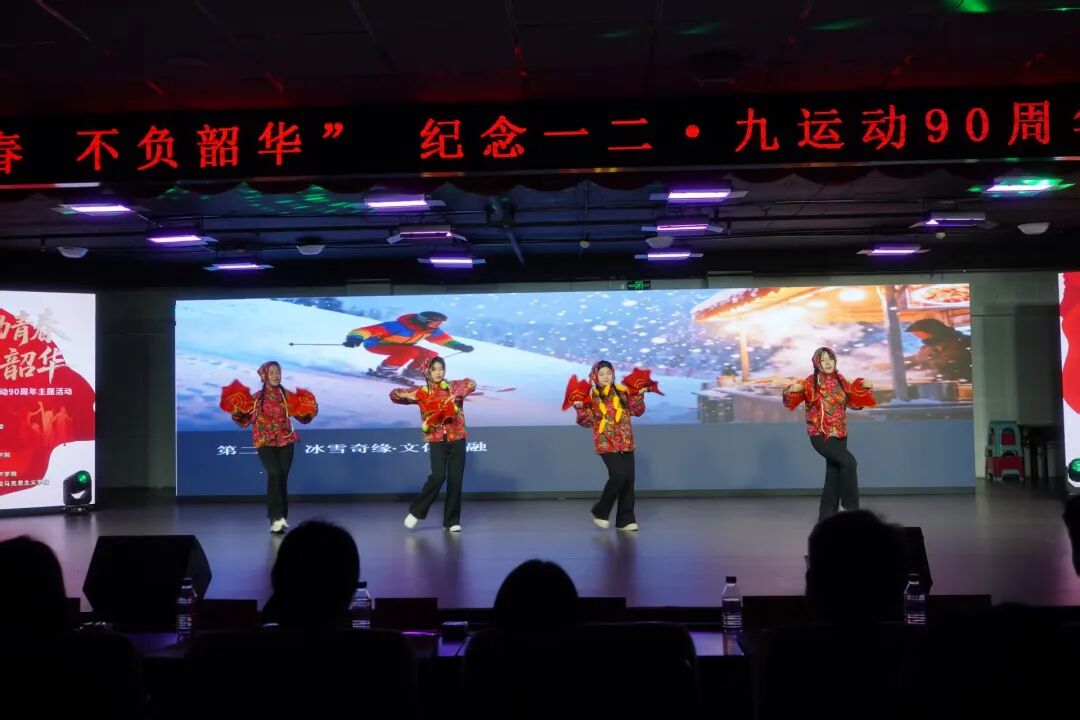 活动现场,商学院学子凭借扎实的艺术功底与饱满的情感表达,为观众呈现了两场高质量的文艺盛宴。话剧《觉醒的青春》以“历史与当代”双时空叙事,串联1935年北平爱国学生的抗争历程与新时代商学院学子的责任担当,通过秘密集会、街头游行、党史研读等生动场景,再现了“12·9”运动中青年学子“以青春之我护家国”的赤诚,融入的乡村振兴创业、社区志愿服务等商学院特色情节,让红色精神与专业实践深度融合。舞蹈《雪落长旅 青春绽放》则以现代舞为基底,融入红色元素与力量型动作,通过“破晓之光”“奋斗之姿”“强国之行”三个篇章,用灵动的肢体语言展现青年学子昂扬向上的精神风貌,将青春活力与家国情怀层层递进,完美诠释了“燃动青春,不负韶华”的活动主题。