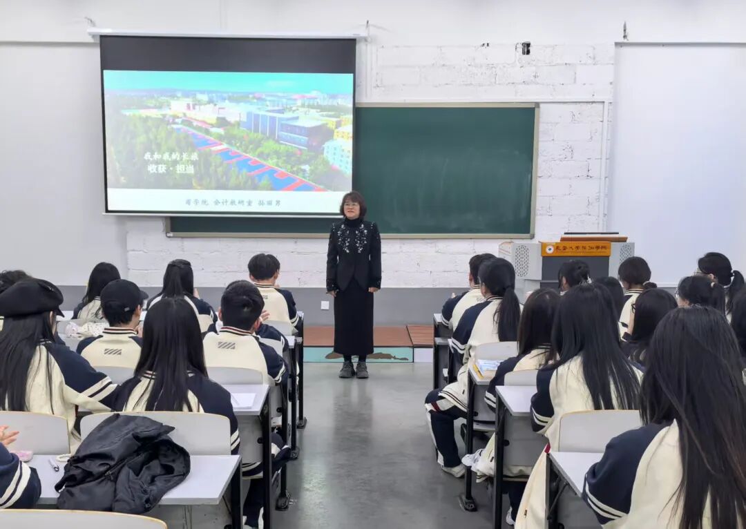 孙丽男结合自身教育教学经历与长旅办学积淀,从“初心坚守”“成长足迹”“使命担当”三个维度展开讲授。她以个人从教历程为主线,串联学校发展历程中的关键节点与育人故事,分享了自己在会计学专业日常教学、课程建设、学生实践指导中的感悟,生动诠释了长旅人“静心教书、潜心育人”的初心。同时,她结合商学院专业特色,引导青年学子将个人成长与学校发展、行业需求相结合,鼓励大家在专业学习中深耕细作,在实践锻炼中锤炼本领,以实际行动践行青年党员的责任与担当。
