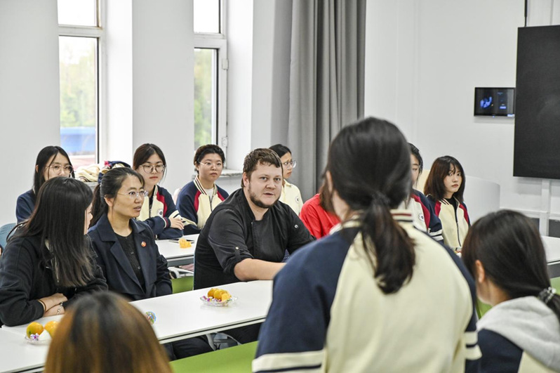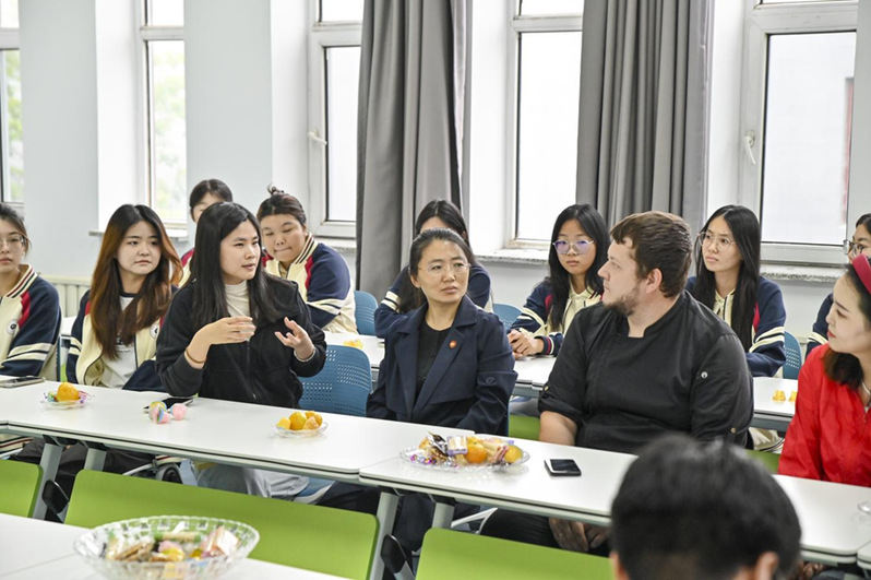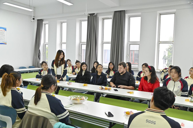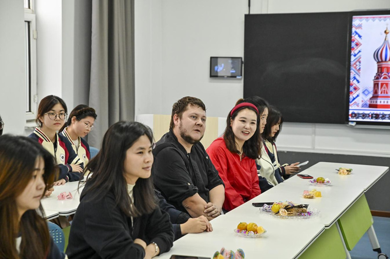 秋意渐浓的校园里,学校俄语专业学生与来自“东北亚长旅号”的俄罗斯团队嘉宾围坐,畅谈俄罗斯风情和美食文化。9月24日,由外国语学院学生工作办公室与俄语专业教研室举办的第二届语言文化节俄罗斯文化交流活动在304智慧教室举行,学院党总支书记孙野、组织员郑雨佳、俄语专业教师张莹莹一同参与,与学生们一起体验这场跨文化对话。