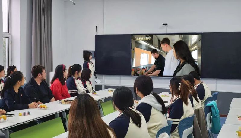 在随后互动环节中,学生们从最初的紧张羞涩到逐渐的大胆自信,纷纷基于宣传片内容和自身专业学习,就俄罗斯饮食文化、厨师团队工作体验以及“东北亚长旅号”运营情况等发起话题。俄罗斯团队成员耐心细致地解答了学生们的疑问,分享了他们在列车上的工作体验和文化交流故事,双方在轻松的氛围中互动。