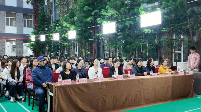 夜幕初垂,活动现场早已洋溢着热闹氛围。主持人王秋皓、马玲司琪迈着轻快的步伐走上舞台,亲切的笑容与热情的话语瞬间拉近了与在场师生的距离。“这不仅是一场欢庆双节的文化盛宴,更是2025级新生们叩响大学文化之门的第一站!”他们话音刚落,现场便响起阵阵掌声。在全场师生的热切期盼中,孙国霞院长缓步登台致辞。她的话语温柔却充满力量:“今夜的活动,是中华优秀传统文化的传承接力,更是青春力量的集结盛会。希望同学们能在旅游文化学院这片沃土上,勇敢追逐梦想,肆意绽放青春光彩,收获满溢成长的大学时光!”院长的殷切寄语让新生们倍受鼓舞,也让在场师生倍感温暖。