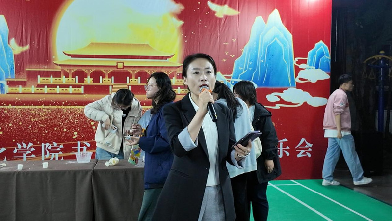 月饼DIY环节刚落幕,现场氛围又因一场特殊的“即兴演唱”迎来新的高潮。原来,在师生们的热情呼吁下,学院领导与老师们临时决定增设即兴演唱环节,用歌声与新生们拉近距离。孙国霞院长饱含深情的歌声瞬间点燃全场,师生们纷纷跟着旋律挥舞手臂,齐声喝彩。紧接着,辅导员老师以及专业课老师们用轻快的节奏、真挚的情感,向新生们传递着温暖与鼓励,同学们纷纷跟着一起合唱,青春的气息在歌声中肆意流淌。