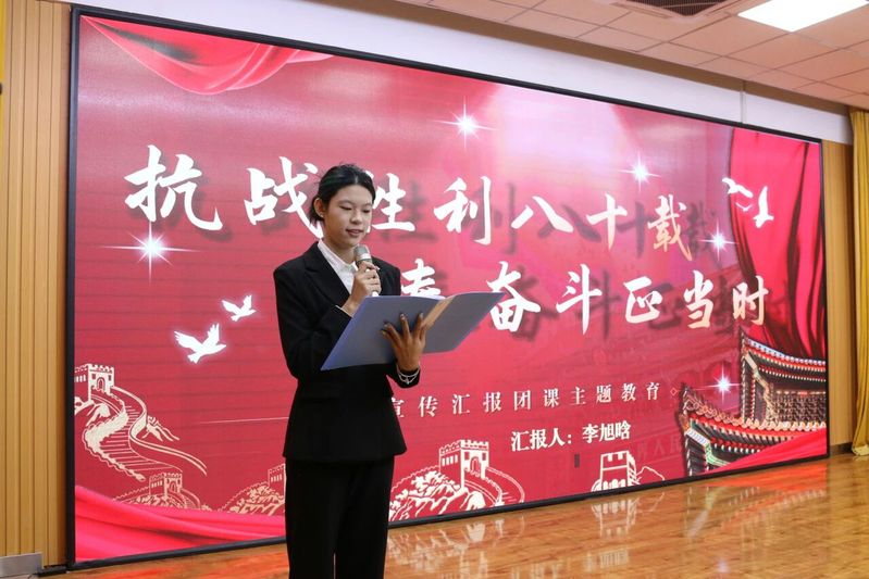 聚光灯下,6位从前期角逐中脱颖而出的团支书,以青春之声解码抗战精神的时代内涵:有人通过还原“抗战家书”里的隔空对话,再现革命先烈舍小家护山河的家国情怀;有人结合实地探访抗战纪念馆的经历,用老照片、旧物件串联起白山黑水间的义勇军传奇、平型关大捷的冲锋号角;还有人聚焦新时代青年担当,以身边学子参军入伍、志愿服务的鲜活案例,诠释“奋斗是青春最亮丽底色”的深刻意义。每一段讲述都饱含深情,每一个眼神都闪耀坚定,选手们用青年视角让厚重历史“活”起来,让抗战精神在对话中直抵人心。