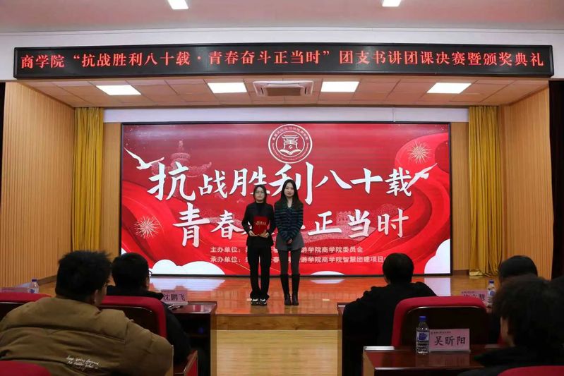 为纪念中国人民抗日战争暨世界反法西斯战争胜利80周年,传承红色基因、凝聚青年力量,商学院于11月25日在筑梦报告厅隆重举行“抗战胜利八十载,青春奋斗正当时”团支书讲团课比赛决赛暨颁奖典礼。